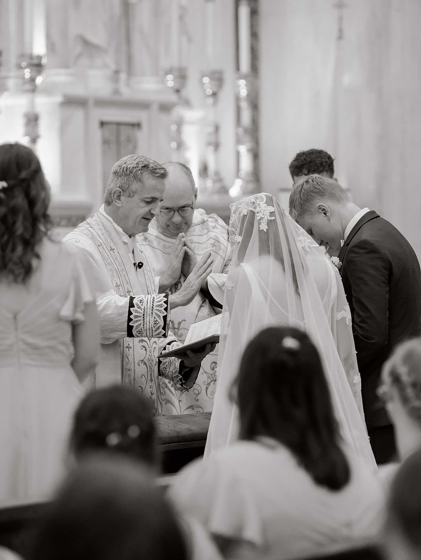 As catholic wedding photographers, we have had the great honor of capturing many beautiful wedding masses, but capturing the sacred details of the Extraordinary Form of the mass, complete with incense, Gregorian chant, and the solemn beauty of the High Altar—felt like a extra privilege. Canon Jayr celebrated the mass and gave a powerful homily. My favorite excerpt was at the beginning when Canon gave a kind yet firm message to the couple and their guests during the homily. After welcoming all to Brooke and Eben’s wedding mass, he kindly reminded them to maintain a demeanor of quite and reverence at all times in the church. “Why, you may ask? Because The Church is not a theater, and marriage is not a show.” Wow! Thank you God for strong leaders like the Canons from The Institute of Christ the King Sovereign Priest.
